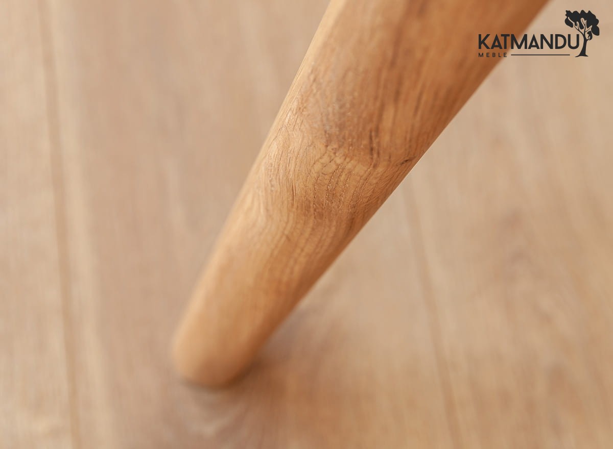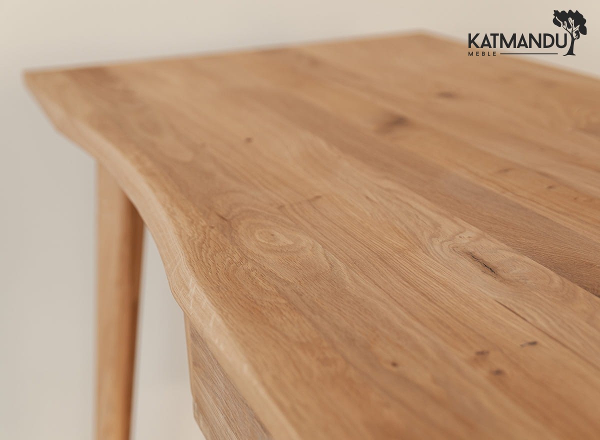 Dziki dąb prezentuje się efektownie nawet nie pomalowany, dlatego i my postanowiliśmy go nie pokrywać farbą, a jedynie zaolejować. Ten proces uwypuklił słoje i sęki, które oddają naturalne piękno drewna. Biurko w stylu skandynawskim powinno znajdować się na równej powierzchni, aby w przyszłości nie uległo odkształceniu. Trzymaj je z dala od promieni UV oraz urządzeń grzewczych. Do jego czyszczenia używaj wyłącznie miękkiej ściereczki, delikatnie nasączonej wodą, a po skończeniu osusz mebel.