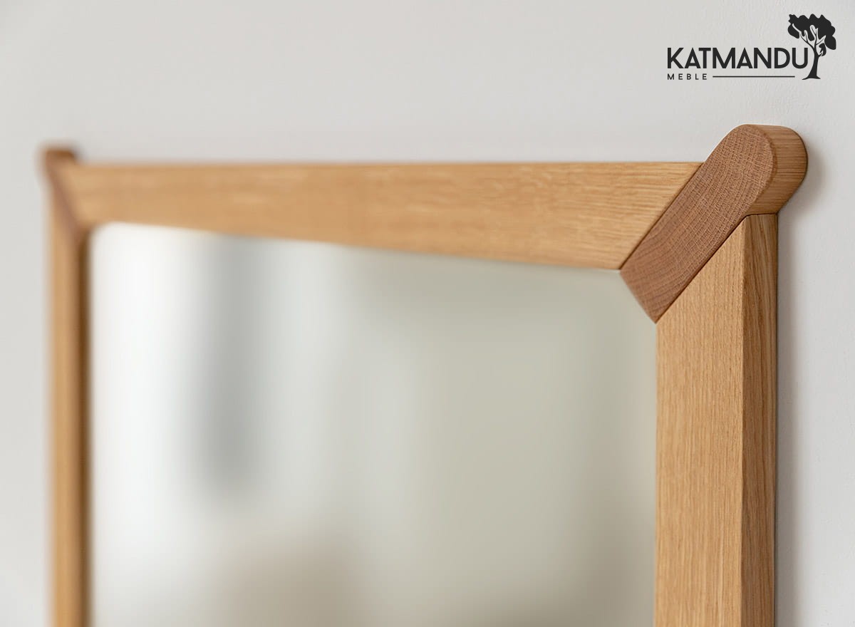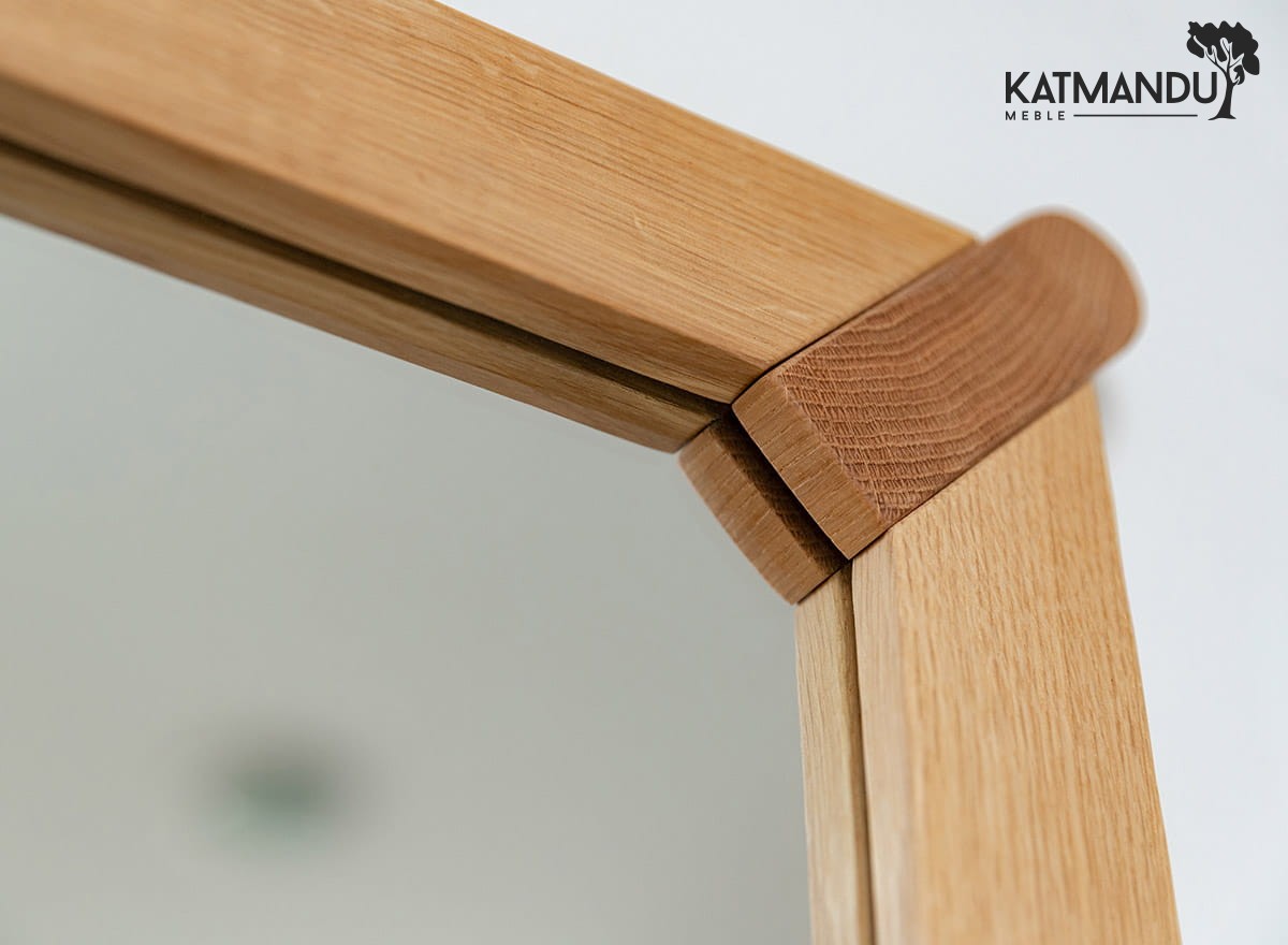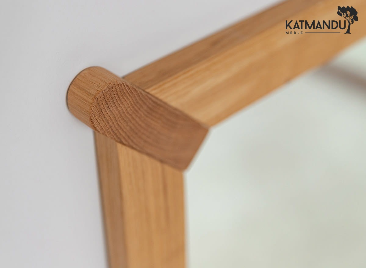 Rama lustra drewnianego wykonana została z litego dębu – surowca o wysokiej gęstości i odporności na uszkodzenia. Każdy egzemplarz wyróżnia się unikalnym rysunkiem słojów i detalami, które są naturalnym efektem pracy drewna. Zabezpieczenie półmatowym olejem Borma zachowuje naturalność materiału przy jednoczesnym zabezpieczeniu powierzchni – i to skutecznym! Precyzyjne wykonanie i charakterystyczne, lekko zaoblone narożniki sprawiają, że rama wygląda lekko, ale jest przy tym w 100% stabilna i trwała.