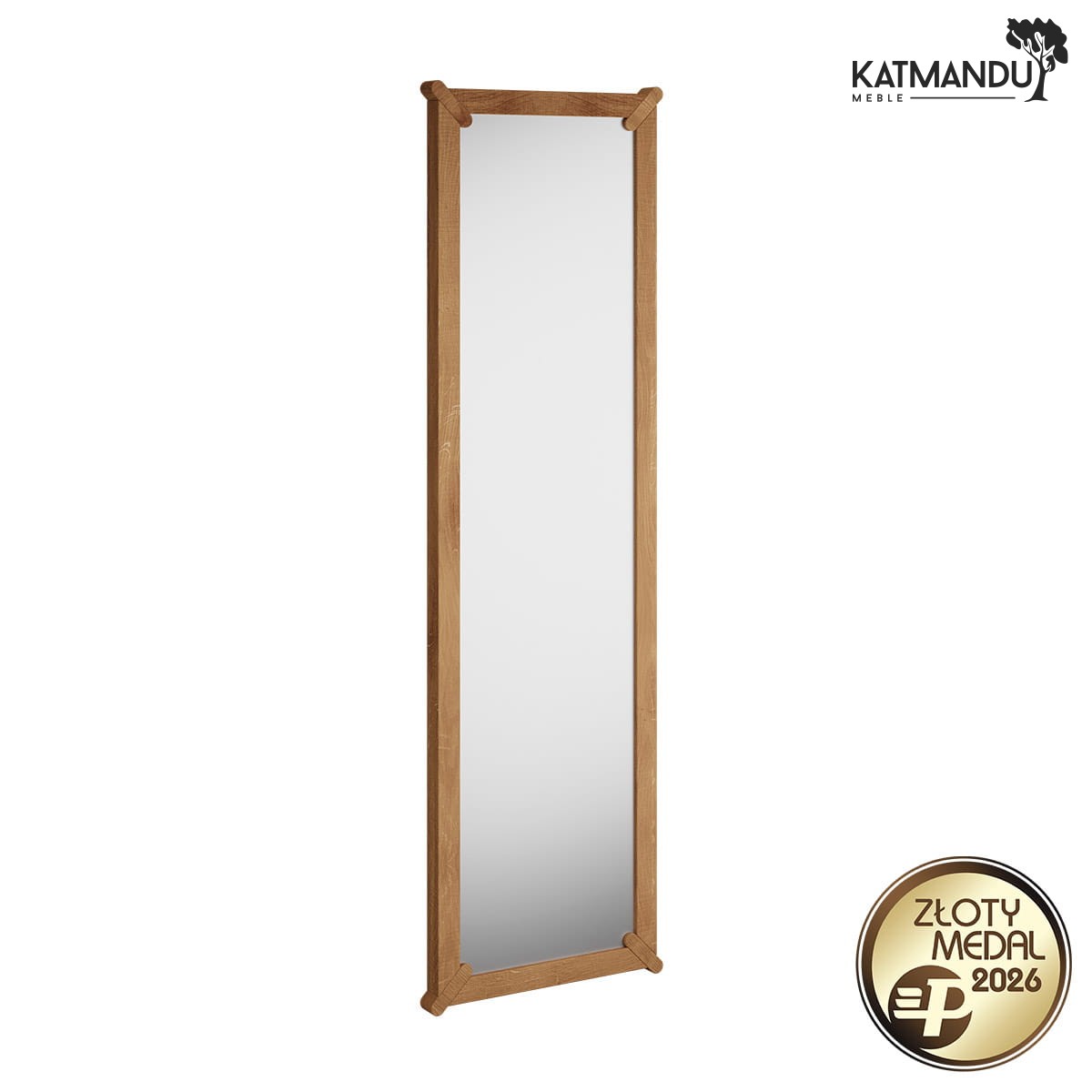 Model o tej wysokości idealnie sprawdza się jako pełnowymiarowe lustro z drewna dębowego w garderobie, przedpokoju lub sypialni. Ułatwia codzienne przygotowania, powiększa optycznie przestrzeń i doświetla wnętrze dzięki dużej tafli szkła. Dzięki prostemu montażowi możesz zawiesić je pionowo lub poziomo, zależnie od układu pomieszczenia. Po prostu przed montażem oceń, co będzie lepszym rozwiązaniem w przypadku Twojego wnętrza. Dlatego jeśli zależy Ci na funkcjonalności „podanej” w estetycznej, minimalistycznej formie – to lustro z kolekcji Campi jest dla Ciebie. Dzięki niemu zyskasz gotowe rozwiązanie do codziennego użytkowania, które nie traci stylu z biegiem czasu.