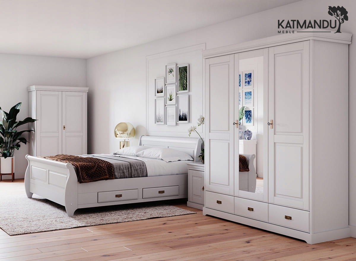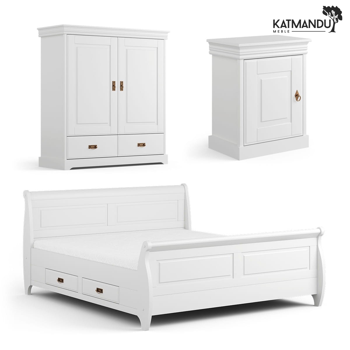 Taniej w zestawie!Sosnowe łóżko z drewna białe Toskania 160cm