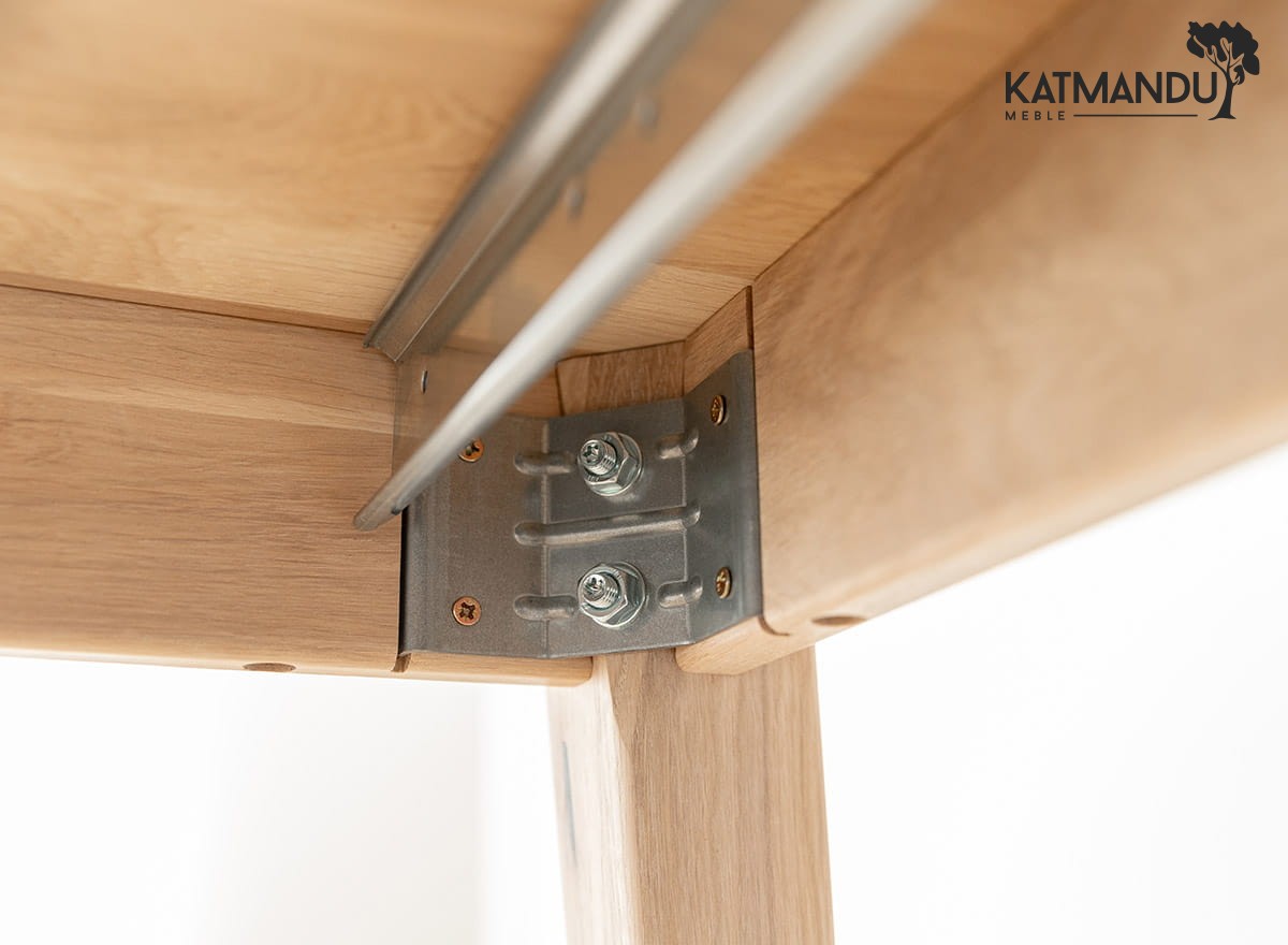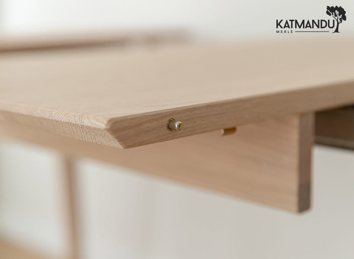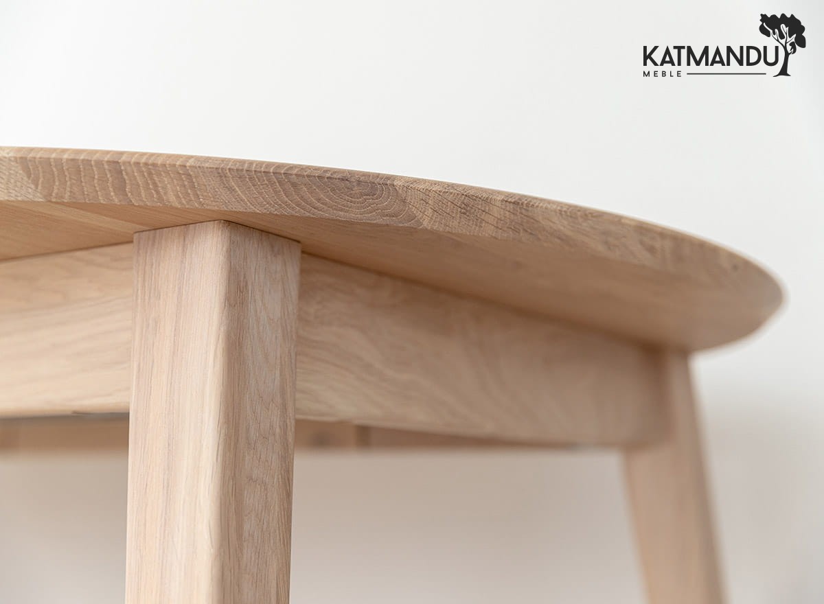 Drewno dębowe jako surowiec naturalny nigdy nie prosi o uwagę – on ją przyciąga, i robi to bez przesytu, nigdy „na siłę”. Wybraliśmy bielony wariant. Po to, aby jeszcze mocniej wydobyć charakter i głębię usłojenia. W dodatku dosłownie każdy fragment powierzchni został ręcznie olejowany, a tym samym cały stół jest niezwykle trwały i odporny na codzienne trudy i domowe, rodzinne rytuały. Co ważne – pracujemy wyłącznie na certyfikowanym drewnie z odpowiedzialnych źródeł. Dlaczego? Bo wierzymy, że jakość zaczyna się od korzeni – dosłownie, bo dąb nie udaje. Jest silny, stabilny i autentyczny – a z czasem nabiera więcej klasy, a nie traci ją, jak w przypadku standardowych płyt MDF.