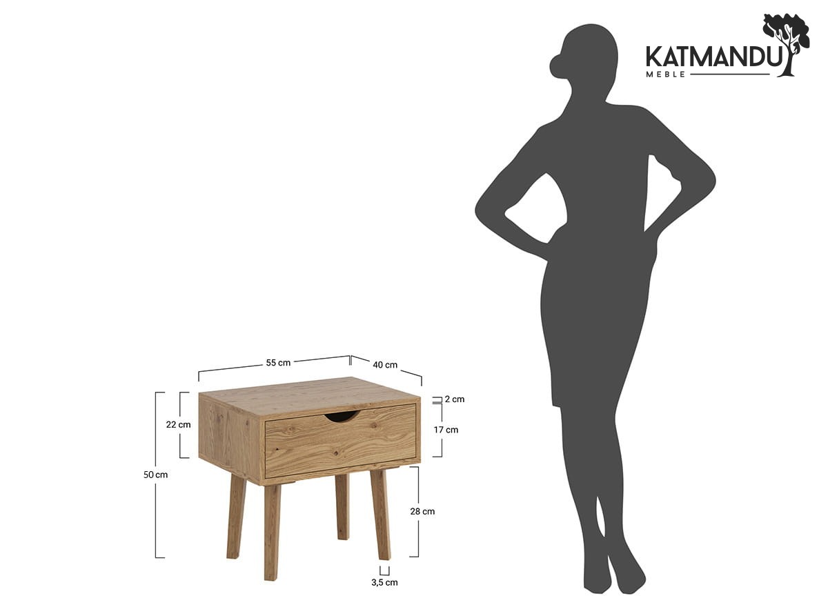 Prezentowana szafka nocna jest wprost niezastąpiona przy łóżku, służąc za miejsce do odłożenia wszystkich drobnych rzeczy, które lubimy mieć przy sobie wieczorem i rano. Na jej blacie zmieści się lampka do czytania, budzik czy szklanka wody, w szufladzie natomiast można schować wszystko, co chcemy mieć pod ręką, ale poza zasięgiem wzroku. W rezultacie jest to mebel, który łączy w sobie praktyczność i niewielkie wymiary fizyczne, będąc przy tym małym akcentem stylistycznym, który dopełni charakter sypialni.