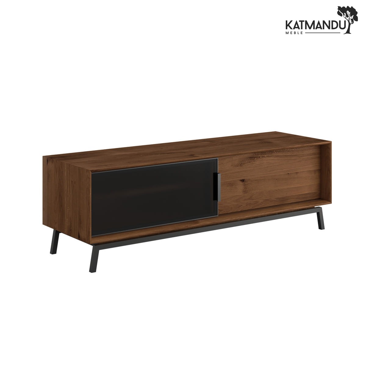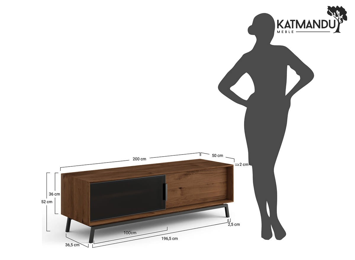 Przemyślana konstrukcja sprawia, że organizacja przestrzeni wokół telewizora staje się prostsza niż kiedykolwiek. Szeroki blat z łatwością pomieści nawet większy ekran, soundbar czy dekoracyjne dodatki, a do pojemnego wnętrza, podzielonego na zamykane szafki i otwarte półki, możesz włożyć cały domowy sprzęt elektroniczny, kable i akcesoria. Przyciemniane szklane fronty to stylowy akcent, który jednocześnie subtelnie eksponują zawartość, a przy tym zamaskuje mniej estetyczne elementy. To rozwiązanie, które łączy funkcjonalność z wysmakowaną estetyką.