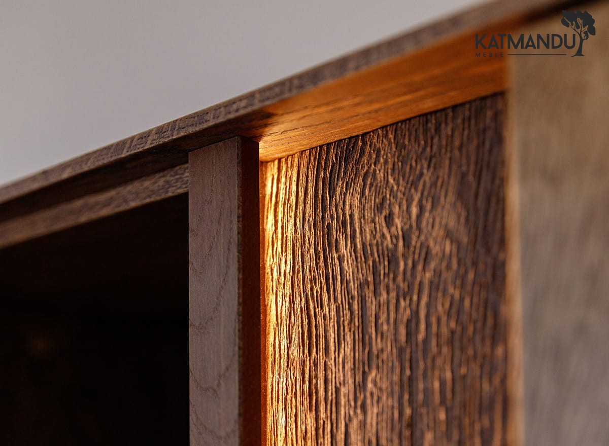 Szafka RTV dębowa oświetleniem tabacco Collodi – solidność i precyzja wykonania