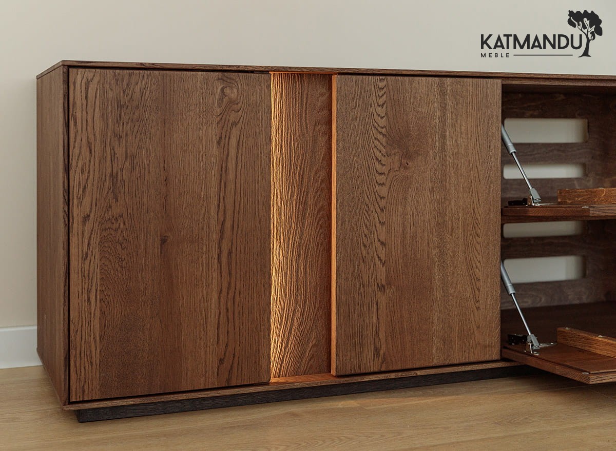 Szafka RTV z drewna dębowego Collodi – praktyczne rozwiązanie do każdego salonu
