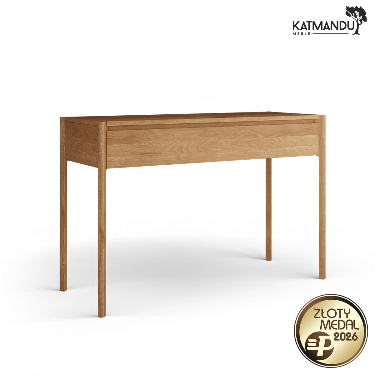 Toaletka z kolekcji Campi została wykonana z litego drewna dębowego i pokryta olejem Borma, który wydobywa z niej naturalne piękno usłojenia i skutecznie zabezpiecza powierzchnię. To wzorowa ochrona przed negatywnym wpływem wilgoci i zabrudzeniami. Gładki blat to idealne miejsce na lustro, organizer, a nawet… filiżankę kawy o poranku. Szuflada z cichym domykiem działa perfekcyjnie – nie trzaska, nie musisz jej szarpać, żeby ją otworzyć – po prostu lekko płynie po prowadnicach. Co więcej, toaletka z kolekcji Campi została zaprojektowana z myślą o osobach, które cenią sobie harmonię między estetyką a praktycznością.