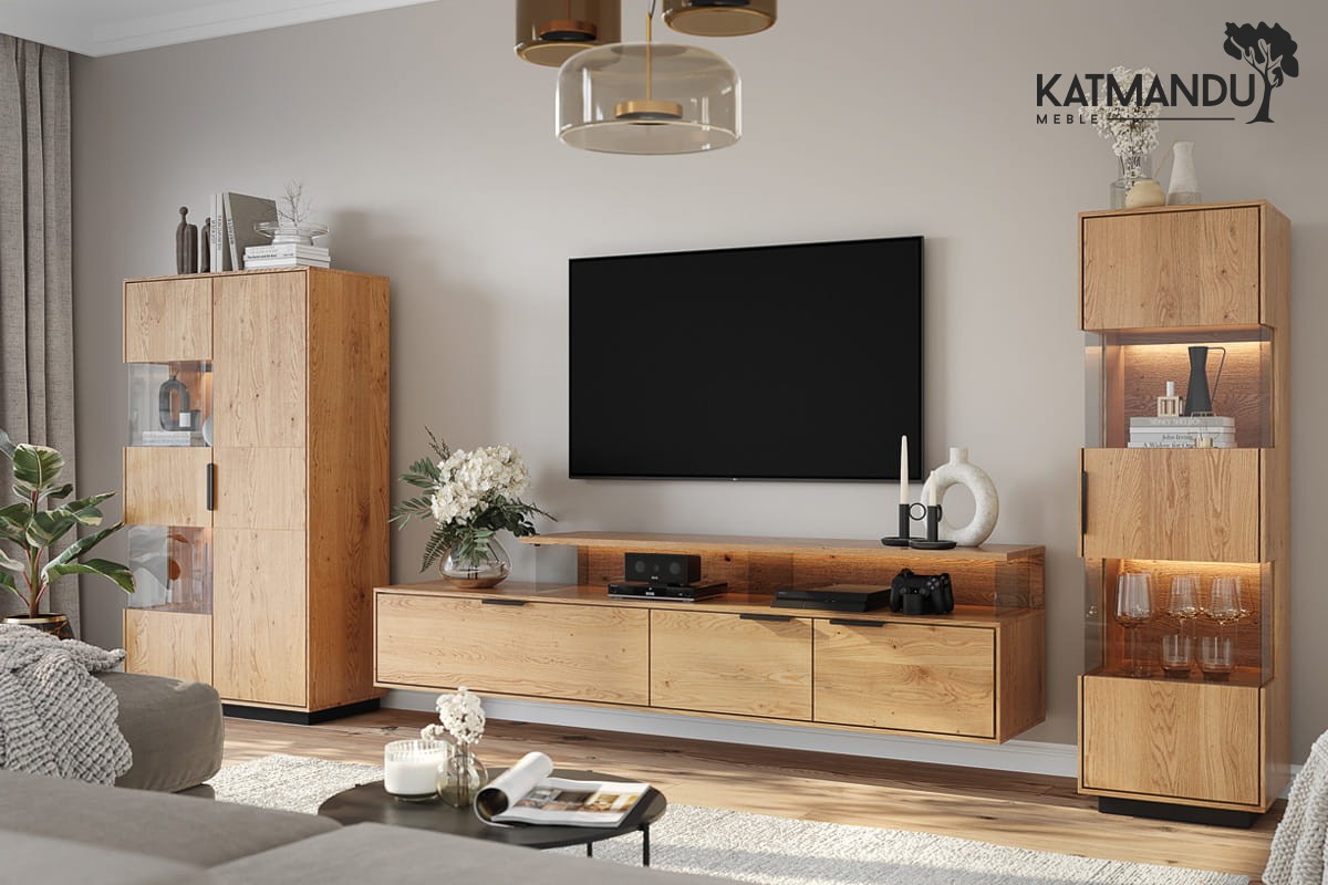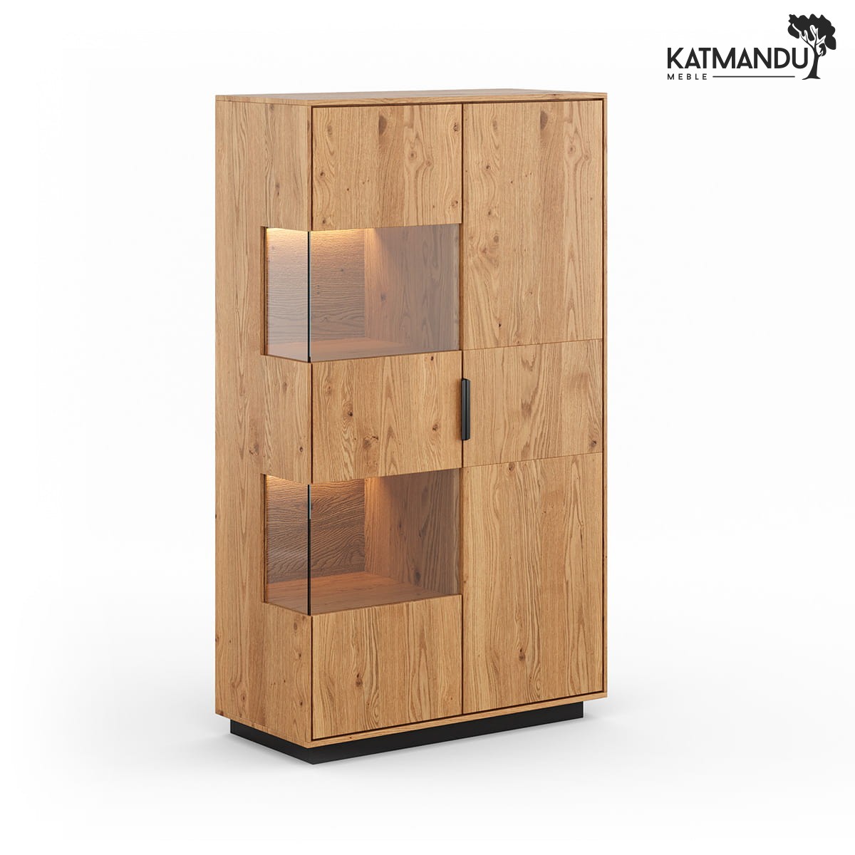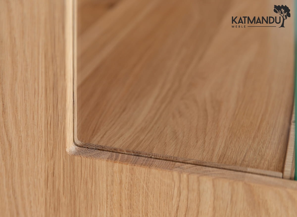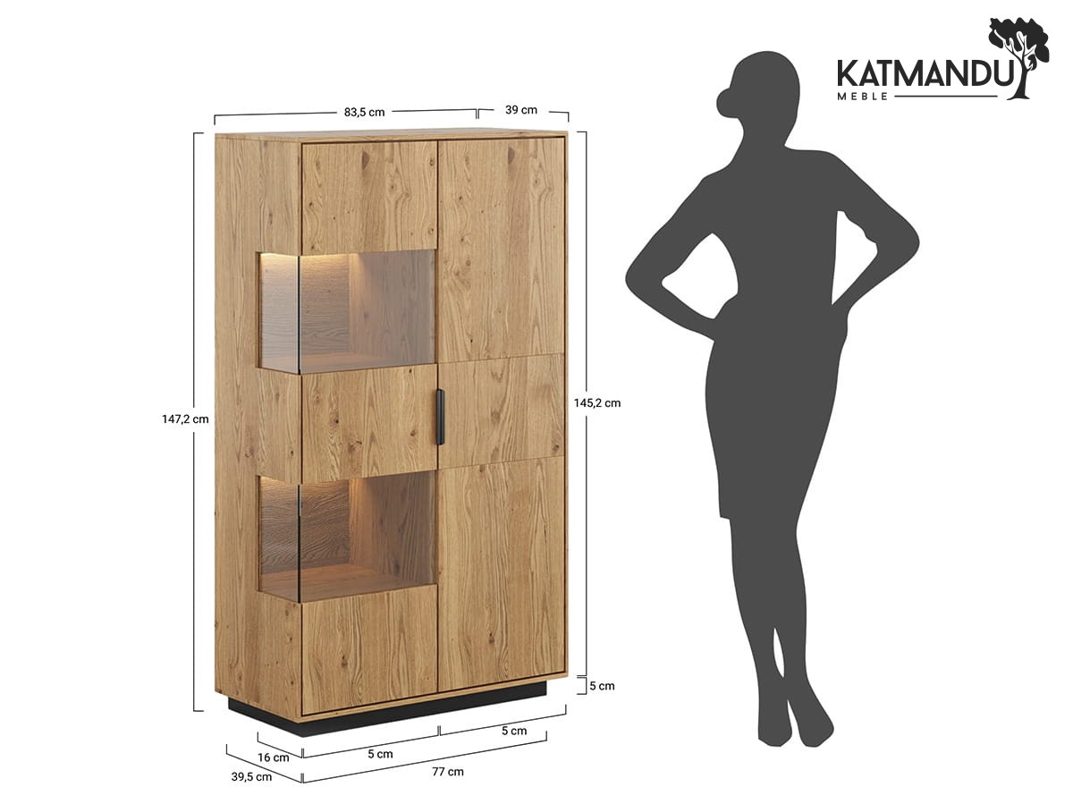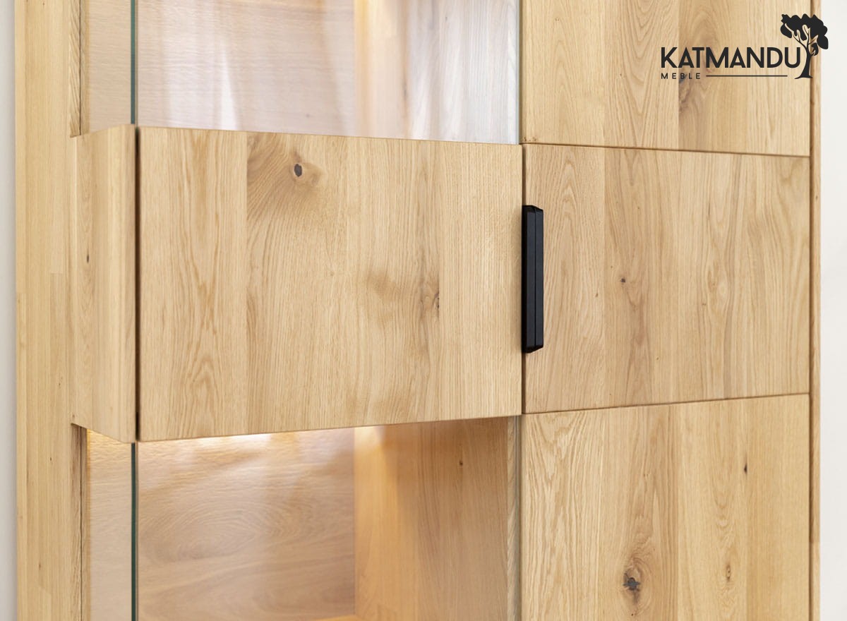 Każdy element witryny 2D z serii Tirano jest dowodem na to, że wysoka jakość wykonania idzie w parze z wytrzymałością. Masywna, dębowa konstrukcja nie tylko sprawia, że mebel jest stabilny, choć lekki wizualnie, ale również odporny na uszkodzenia, co jest kluczowe dla zachowania piękna mebla na lata. System cichego domyku eliminuje ryzyko gwałtownego zamykania, przedłużając żywotność mebla i zapewniając cichą pracę.