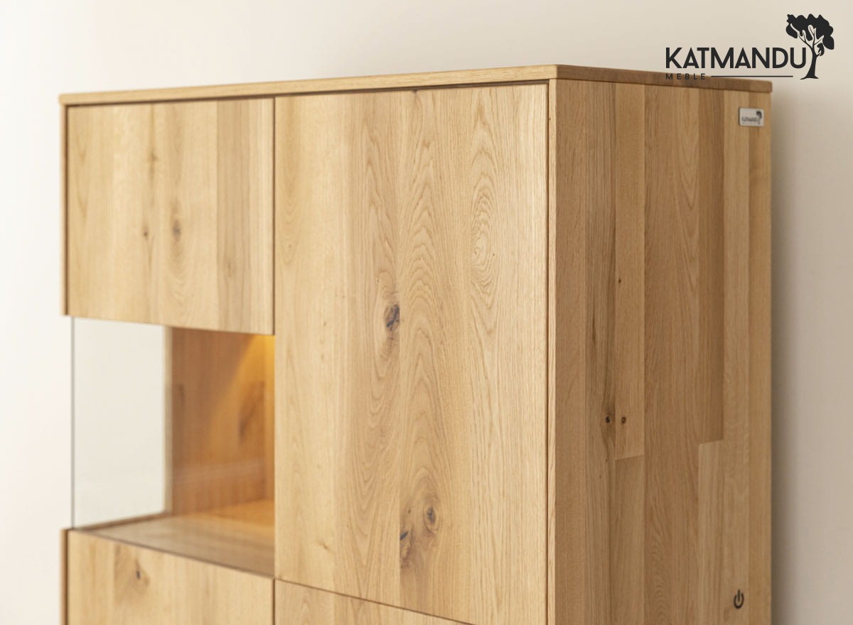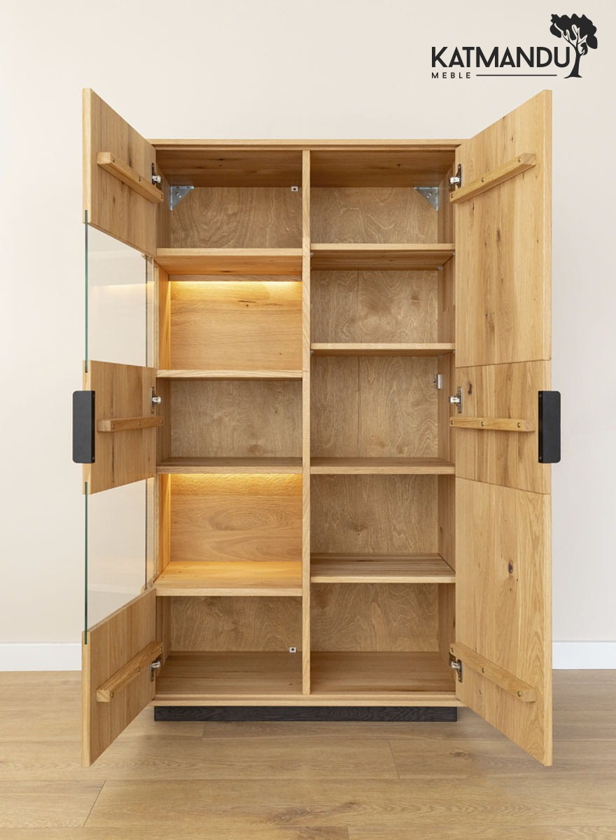 Drewniana witryna z dębu – przechowywanie nabiera elegancji gdy praktyczność łączy się ze stylem